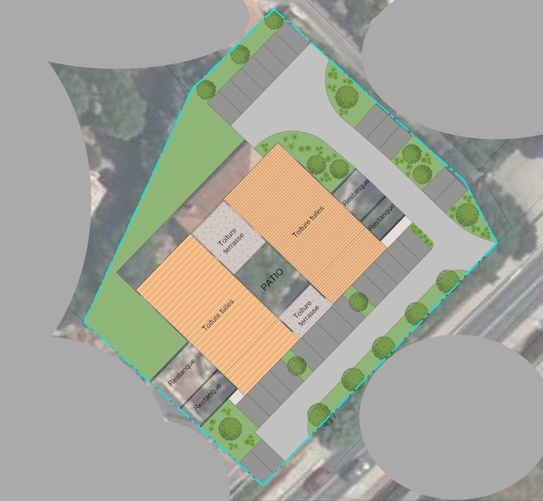 A 2 minutes du centre de Manosque et à peine plus de l’autoroute ce projet de 1200 m2 autour d’un patio est fractionnable.